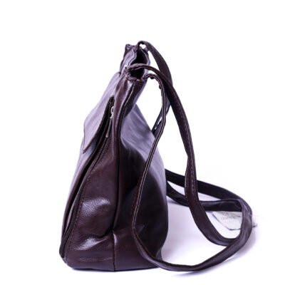 Soft faux leather, medium size, lightweight, adjustable shoulder strap, top zipper closure, clean and practical design, excellent condition.