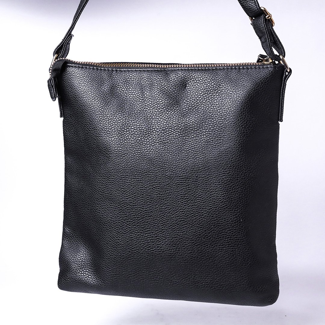 A sleek black crossbody bag with suede and leather combination, perfect for everyday use.
