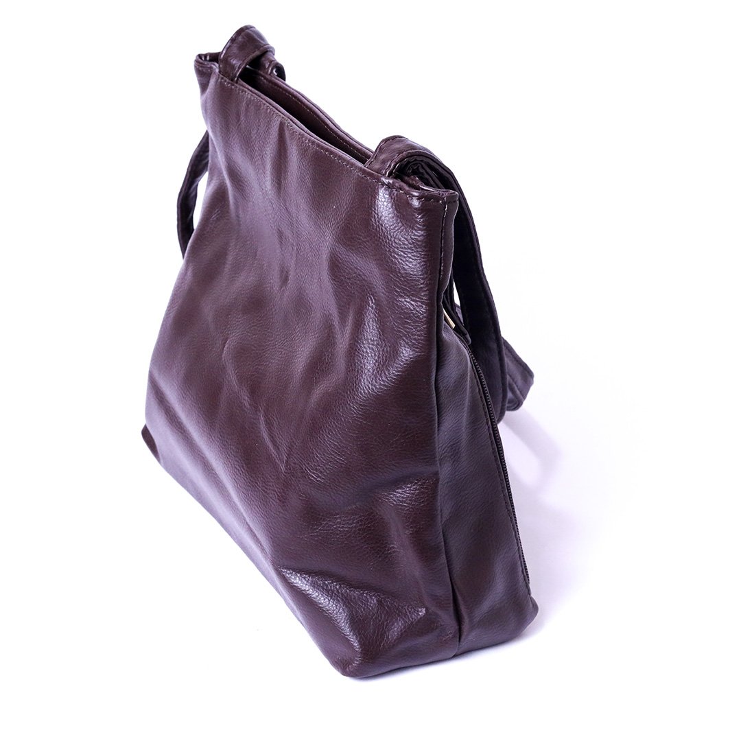 Elegant brown crossbody shoulder bag with a clean structured design, featuring multiple zip pockets for organized everyday use.