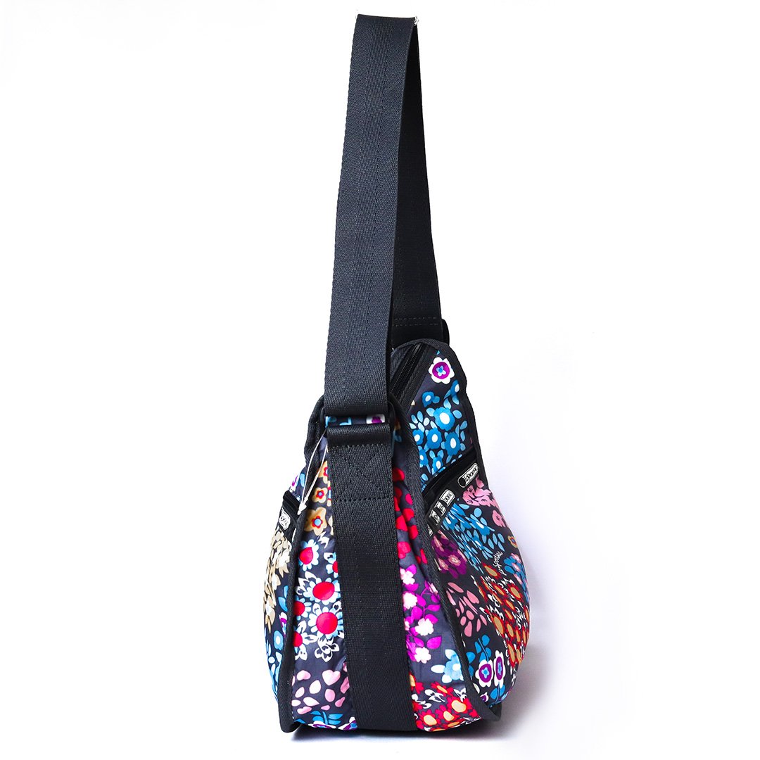 Stylish women’s crossbody bag from LeSportsac featuring a colorful floral pattern, lightweight design, and practical size for everyday use.