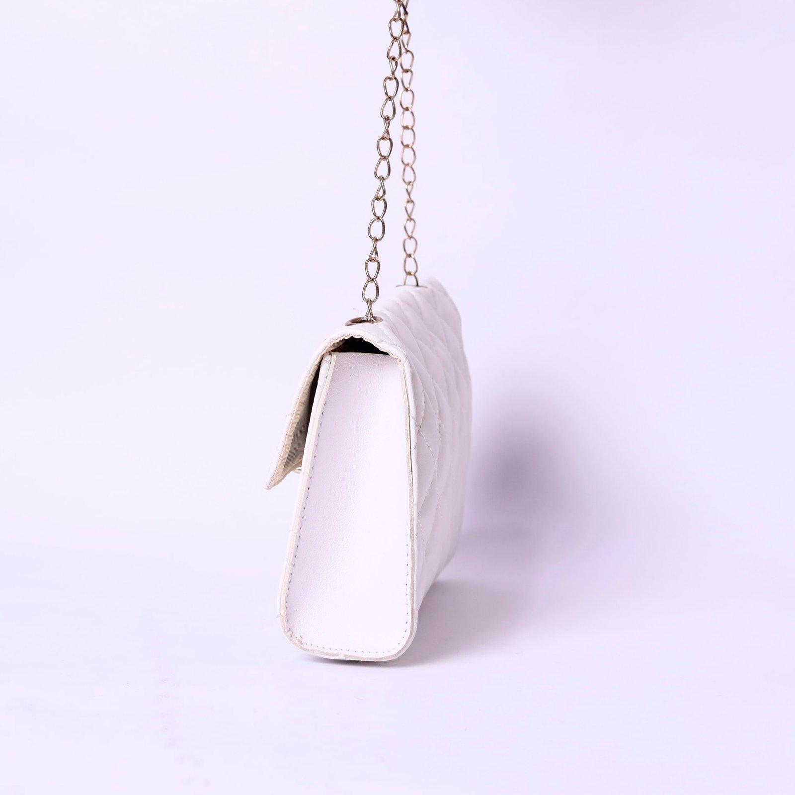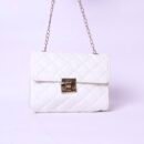 | Elegant white quilted bag featuring a gold-tone chain strap and chic turn-lock closure. The structured silhouette and classic design make it perfect for both casual and dressy looks. Compact yet practical — a timeless second-hand piece in very good condition. |